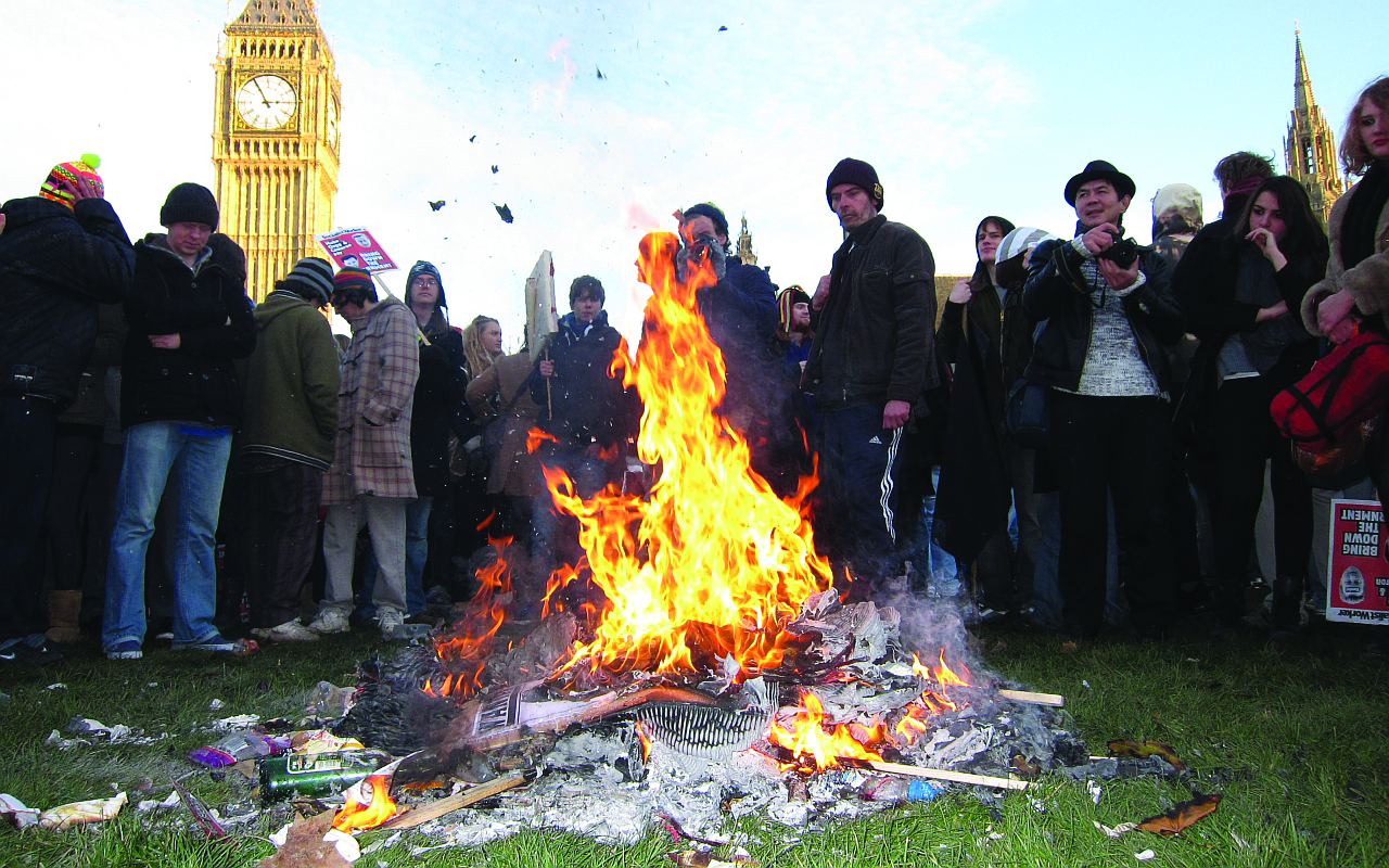 So what began this upheaval? What was the source of this populist rage? In 2010, during the recession, the UK government cut its subsidization of education, causing university tuition fees to skyrocket. Maximum tuition rose from £3,375 to £9,000, equivalent to $14,000, thus pitching the government, the people and the universities in a financial battle against each other. U.S. students might dismiss such comparatively low tuition rates, but in a country where university was virtually free, such an increase was bound to cause debate.